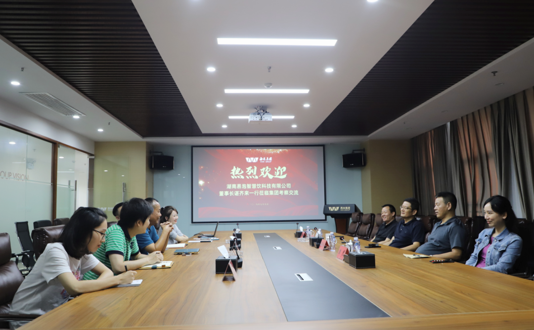 2019年7月9日下午,湖南易泡智慧饮科技有限公司(以下简称“易泡科技“)董事长谌齐来、总经理王君一行莅临西米集团考察交流。西米集团董事长粟平会见客人并合影留念。会议由集团常务副总裁曹爱民主持,集团各职能部门负责人参加,双方共同交流、促进共赢合作。