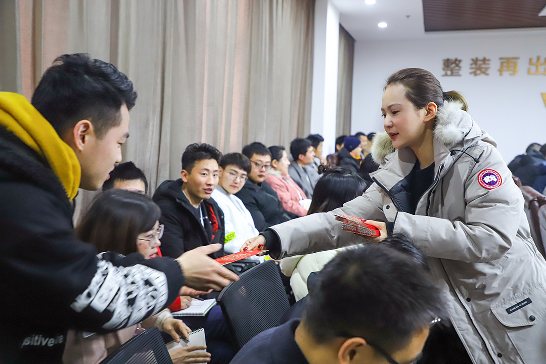 ▲ 图为西米集团郑西米总裁为员工发放红包