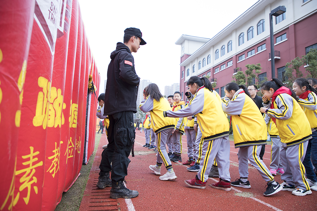 3月25日是第24个“全国中小学生安全教育日”,“关注安全,关爱生命”主题宣传活动在开福区江湾小学启动。活动由湖南省教育厅、省公安厅主办,省教育厅党组书记、厅长、省委教育工委书记蒋昌忠出席启动仪式。活动现场,呈昱安训的教官们与近千名师生一起,进行了烟雾逃生疏散、医疗救护、道路交通安全等模拟演练。